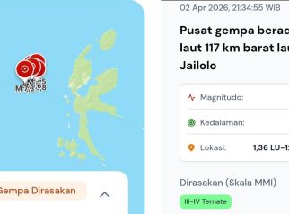Gempa Kembali Guncang Ternate, Magnitudo 5,7 Berpusat di Laut 117 Km dari Jailolo