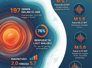 Dominan Berpusat di Laut Maluku, 197 Gempa Bumi Terjadi dalam 12 Jam Terakhir